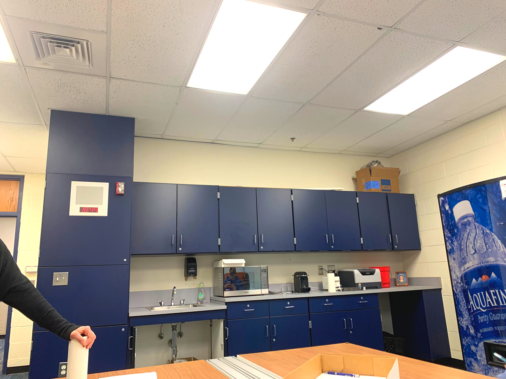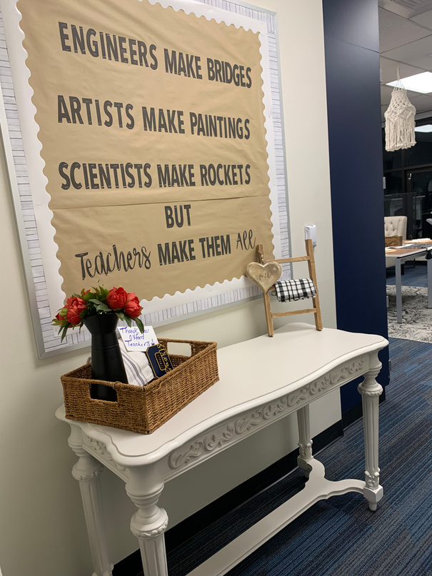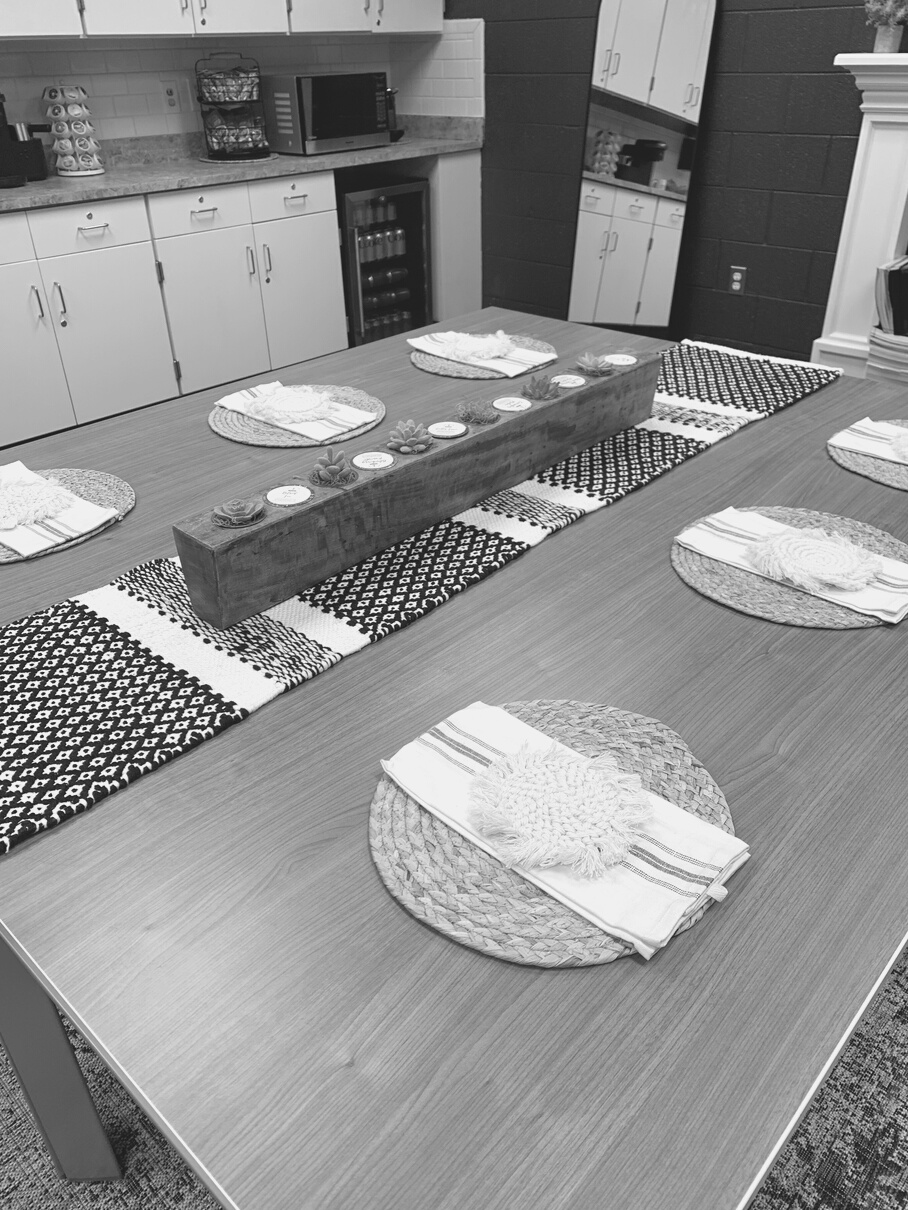 Project Team O was a fundraised and planned interior design transformation for the teachers lounge at Oxford High School. After the school's traumatic event of a school shooting, I made it a mission to create a space where teachers felt comfortable and safe. Through an organized timeline of 3 months and several design concepts, my goal was to transform this space into a bright, warm, and modern farmhouse feeling. I painted an accent wall to highlight the center of the room with a large gathering table, I manipulated the cabinets and added a subway tile backslash, and I contributed comfortable seating options to the design. I hope that you feel the love and passion that went into this project, along with the joy of supporting my community in a creative aspect.