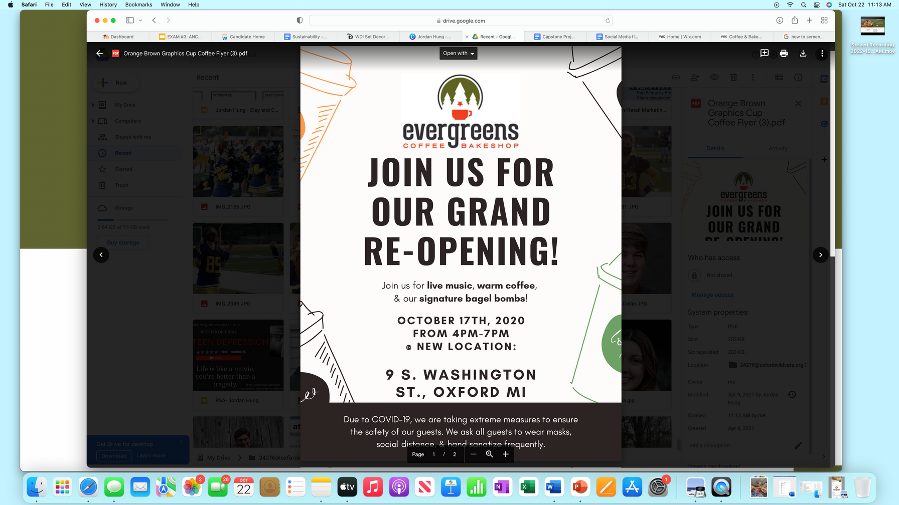 A local coffeeshop, Evergreens, was looking to expand their clientele and space for a grand-reopening. With a brand new renovation in 2021, I sought to create an online presence for the company through social media platforms. Therefore, I created and designed an instagram, Facebook, and mobile app for the local shop. With that, through promoting their best-seller item, the 'Bagel Bomb', and representing the variety of items on the menu- I was able to increased their website interaction by 75% and social media likes/ shares by 42%. This exposure was a great advantage for the company and taught me many skills in Abode photoshop, Illustrator, and Bridge. Overall, the monthly revenue started to increase and 'Evergreens' was able to make a name on the map as my community's go-to coffee stops.